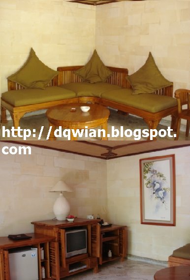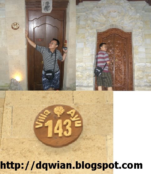 Ternyata tuh, omaigot jalan ke kamarnya itu meni naik2 ke puncak gunung deh. Karena msih berbukit gitu kali yah. Bgitu sampe pintu kamar, lbh ckckck lagi deh. Soalnya pintu itu berlapis dua. Di paling depan ada pintu kayu. Bgitu dibuka ada teras kecil baru deh pintu utama kamarnya. Udah gitu, gemboknya ya ampuuuunnn guede ajah. Kita dapet villaayu no.143.